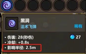 影响半径,当法术带影响半径时,则说明该法术为范围伤害,例如黑洞,范围为2.5m