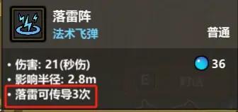 可传导3次,我们直接以截图为例,可以看到落雷只覆盖了1个目标,但是伤害会发生传导,也就说,落雷可以同时攻击3名敌人。