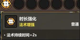 法术持续时间+2s,这个其实是好理解的,但之所以要说这个,是因为要跟大家分享一个小技巧。如果你强化的是一个持续伤害法术,比如黑洞,落雷,那就是说黑洞和落雷的持续时间多了2秒,但如果你的法术时魔法弹这类的法术,有了这两秒的强化,就可以让他飞的更远了。