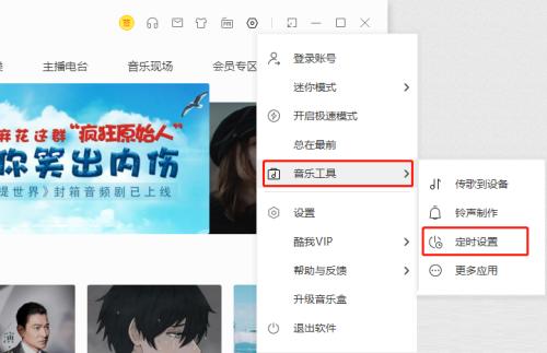 2、接着点击下拉选项列表中的"音乐工具",选择其中的"定时设置"选项。