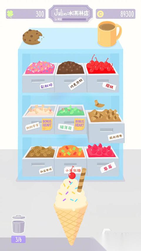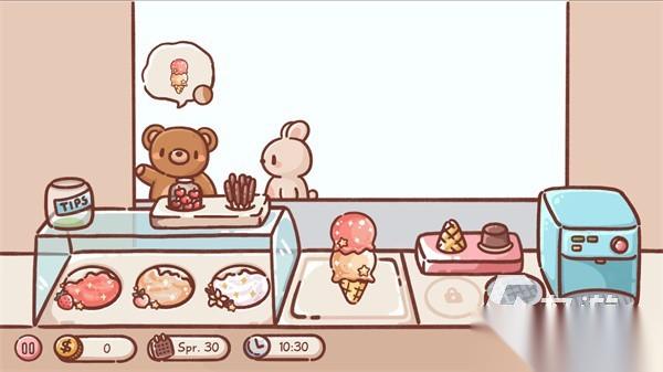 小小的餐车上装着冰淇淋制作的各种设备和材料,巧克力口味的和各种糖果口味的冰淇淋在售卖时价格都是不同的,有些订单在完成时有一定的时间限制,需要在规定的时间内制作出冰淇淋,每一个订单获得的金币收益都会在屏幕下方展示出来,利用金币到商店中可选购冰淇淋制作的材料,解锁更多的冰淇淋制作食材。