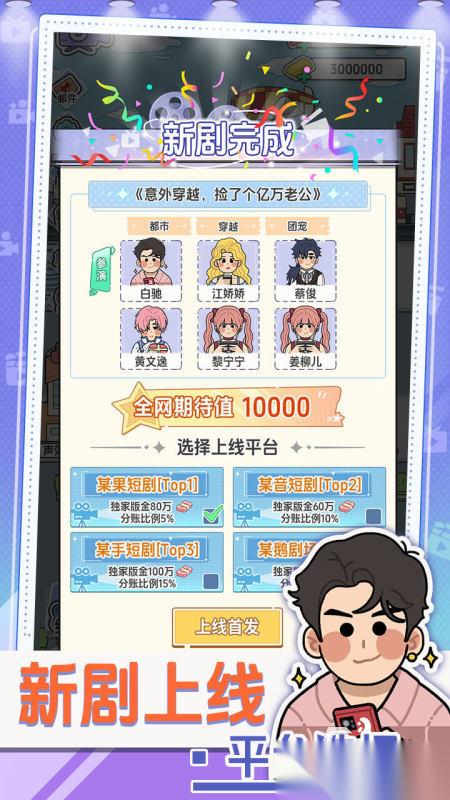 商业模拟经营方向的操作玩法,可以更好的启迪大家伙的智慧点子,组建你们自己的演艺公司慢慢的起步,游戏里面的演员招募是至关重要的做法,还会有着全流程的创作效果可以被大家所感受,公司方面的运营和管理会很关键,演员的人设打造也不要忽视,钻研全新的题材是关键哦。