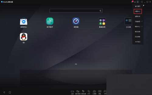 2、接着点击下拉选项列表中的"设置中心"打开。