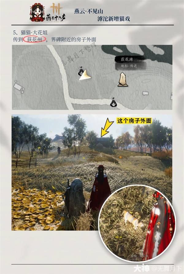 《燕云十六声》不见山滹沱地区的猫戏位置都在哪里呢?还不清楚的玩家下面请看由“无舞月下”为大家带来的《燕云十六声》滹沱猫戏位置一览,希望可以帮助到大家。