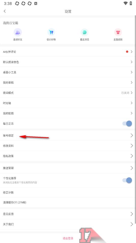 3.当前页面上呈现出来的内容有很多,想要绑定qq账号需要找到【账号绑定】功能点击打开即可进入页面设置。