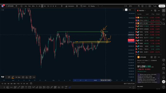 最终行情也验证了这一判断,从9万上涨至9万四,整体走出了大约4,000点的上涨空间。
