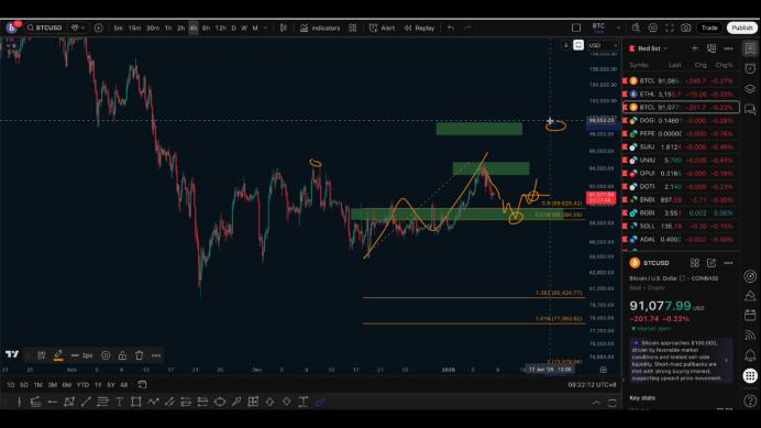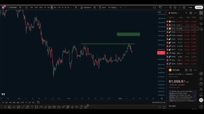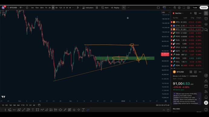 如果价格跌破上升趋势线,同时进一步跌破88,400到89,600这个关键支撑区间,并且在破位后走出明显的空头结构,例如下跌—反弹—再下跌,那么基本可以确认,这一轮反弹已经结束。
