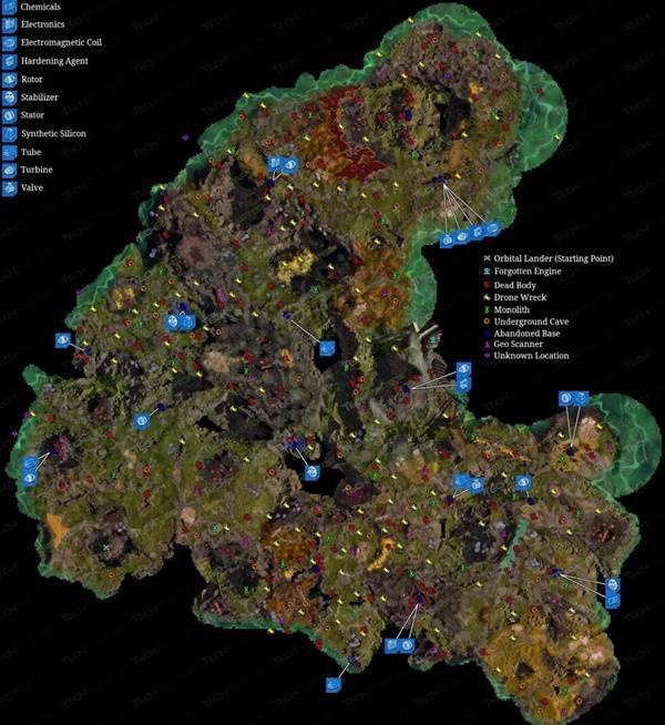 在上面的地图上,我们标明了抢先体验版游戏中可以找到的多个兴趣点的位置。此外,我们也标明了你可以在哪里找到配方解锁蓝图;据我们所知,这些蓝图是固定刷新点。