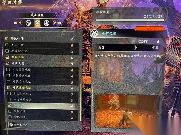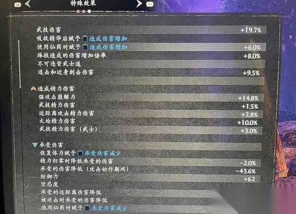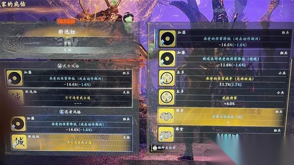 2.武家选择一个新选组的不可违背武士之道(近战加伤44%左右),再选一个加藤的动作减伤或者藤堂的加血都可以,对操作有信心的选本多的武技增伤或还有一个近战增伤