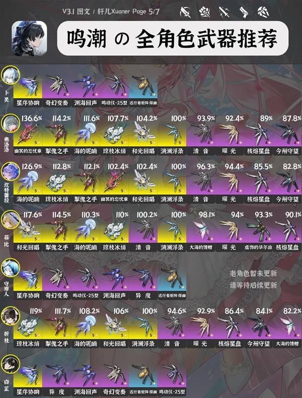 ④部分角色在不同使用场景不同配队中武器的优先级可能存在不同,请结合实际配队参考。比如副C琳奈老常驻五星会更好点,而主C琳奈新常驻五星会更好点。