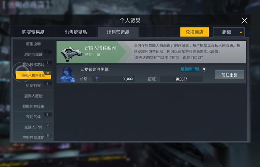 违禁品贸易的收购信息并非直接公开,且运输过程伴随高风险。违禁品是一类特殊道具,无法在商店购买,主要通过在虫洞探索和深空探秘等高等级活动中随机掉落获得。运输违禁品进入治安区和低安全区时,会被星门海关攻击。回收违禁品的贸易商人位置不固定,每位商人通常只回收一种违禁品,但收购价格固定且通常远高于合法商品。尽管风险巨大,运输违禁品仍是获取高额物联币回报的重要手段,要求玩家对航线安全有更高的警惕性。