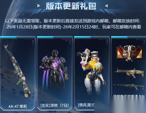 此外,版本更新后还有超多福利活动等待CFer参与,2月15日前,CFer可无条件领取四重版本更新补给包。
