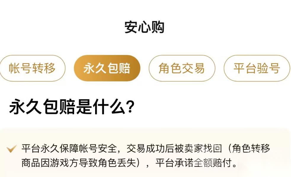 安全是交易核心的底线,作为阿里巴巴灵犀互娱旗下产品,拥有官方强大背书,信誉度极高。开创业内先河,并且还是第一个提供永久包赔服务的伙伴,彻底消除了账号被找回的风险。资金采用的是第三方托管,等到买家可以正常登录没有任何一场,才会将款项打给卖家。