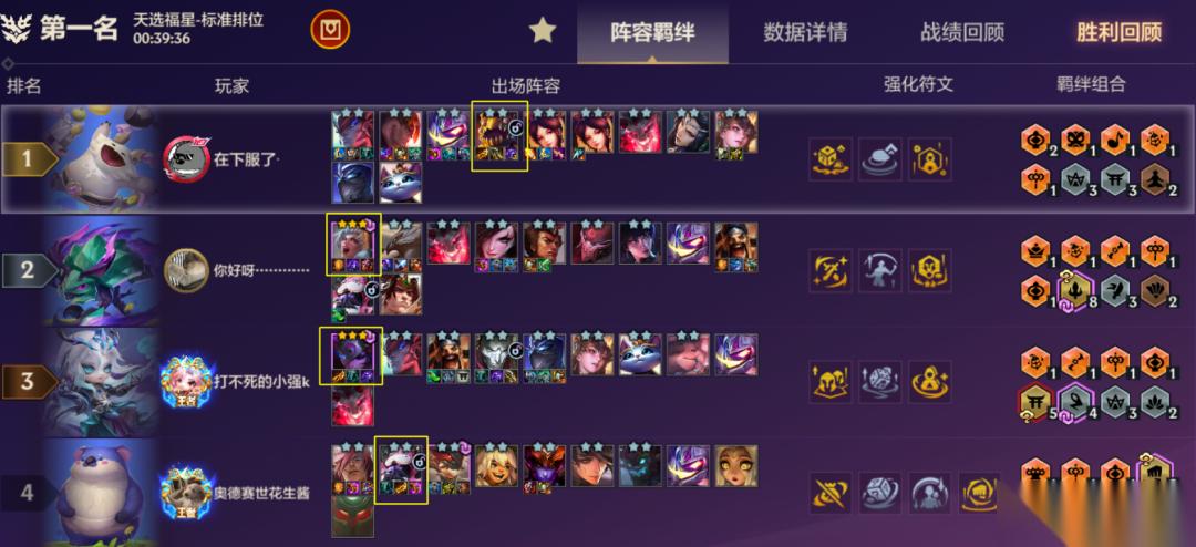 大嘴输出能力更加惊人,1星随便破万,二星场均15000+伤害,牛牛在大嘴面前敲碎了钟也无济于事。强度如何,不言而喻。宗秘大嘴的运营思路(高清一图流+代码在文末)(强度评级T1+至T0-上下)上分极其不稳定,特别依赖经济类强化,空城、连败,正常运营都能玩,现在更流行空城。什么开局玩大嘴最舒服?经济类强化、天选塔姆、羊刀开局。