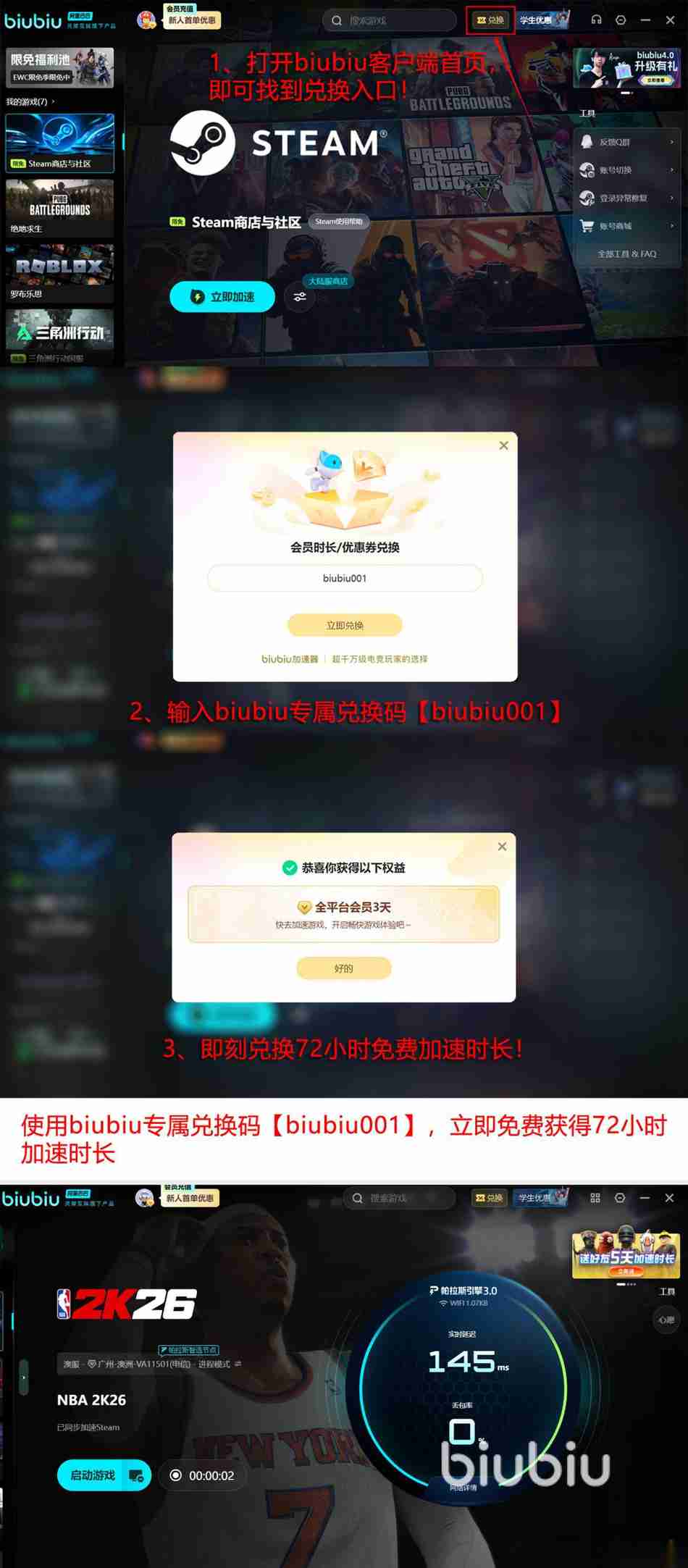 说到这里,人们都纷纷竖起了大拇指,但是又满心担忧,体验如此高端的软件时需要花费金钱,其实目前已经为大家提供了丰富的福利,首次成功注册之后就会拥有24小时的免费加速特权。其次所有人群也可用【biubiu001】,成功领取三天的免费加速特权。所有的新人无需担心,这两种方式都可以同时使用,那么就可长达96小时。