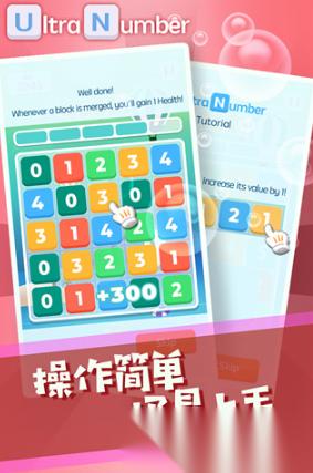 这是一款靠数字叠加消除来玩,一开始只有几次操作,点一下方块数字就会加一,三个一样的数字挨在一起就会自动合成升级,如果点了之后没合成就会少一次机会,机会用完游戏就结束,界面颜色鲜艳。数字动起来非常的清晰,每一步操作都有非常明显的反馈。大家在玩的时候需要简单思考一下怎么点更合理,游戏其实不复杂,上手很快,碎片时间拿出来就可以玩上几局。