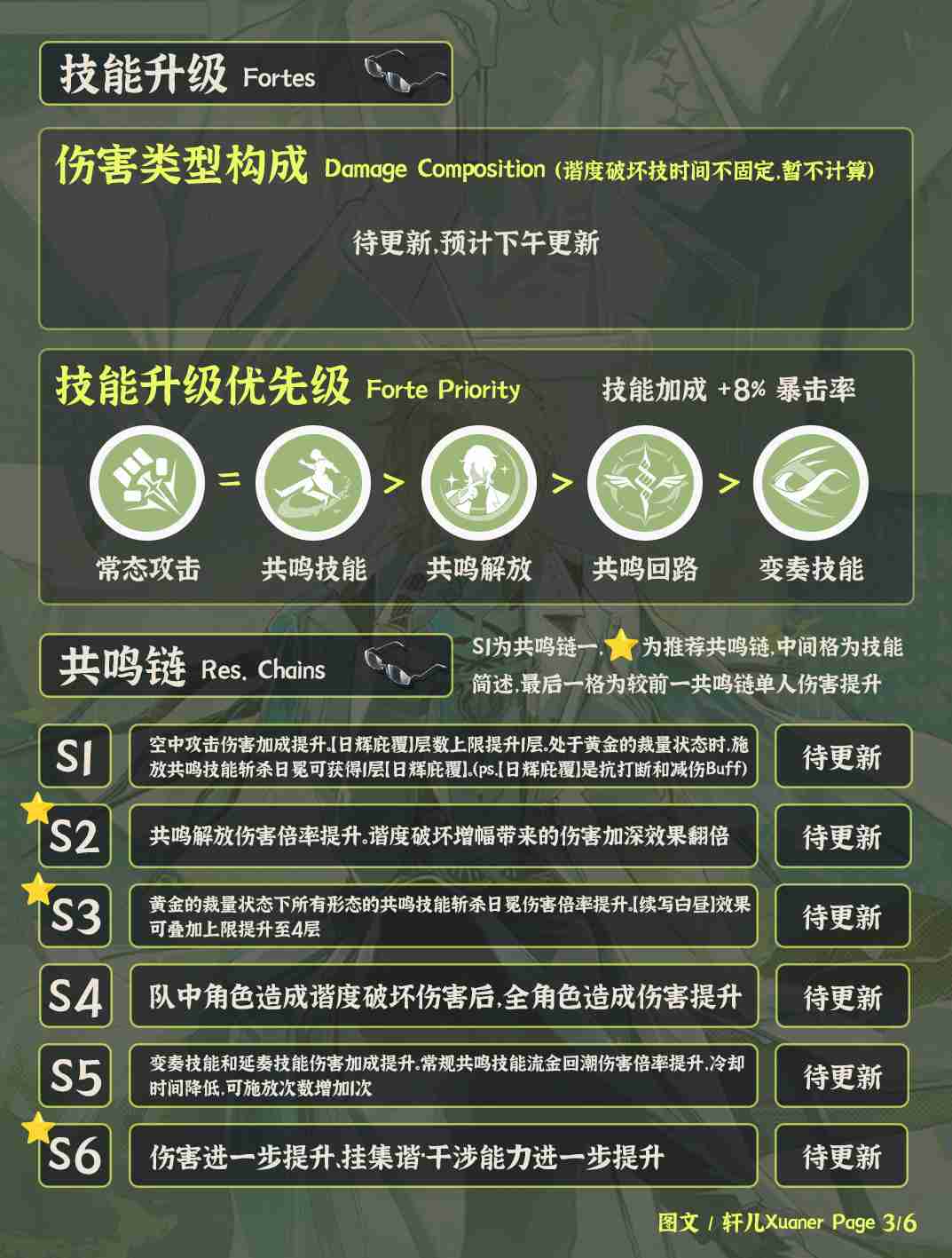 ③ 陆·赫斯主要输出类型为普攻伤害。共鸣链推荐抽取2/3/6链。基本都是伤害倍率提升以及Buff层数上限提升,纯数值提升。这次0链即可提供免疫打断和减伤是比较慷慨的。