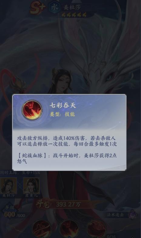 所以她输出的同时也是可以具有回血能力,在续航能力上面,美杜莎前期是非常适合上场的,美杜莎在各类能力都有提升的同时,生存能力的自然就更不用担心了,只要站得住场,她在输出当中是非常适合组队的,而且只要玩好她这几类技能的搭配,强度自然也可以释放出来,美杜莎作为一张橙卡的话,目前在强度上面虽然没有红卡那么高,但是推荐程度还是有的,特别是开荒时期,泛用性比较强,同时达到这样强的威力还是非常适合上场的,如果想要用美杜莎这些能力来搭配整体的阵容,建议大家可以考虑的是萧炎以及萧薰儿。