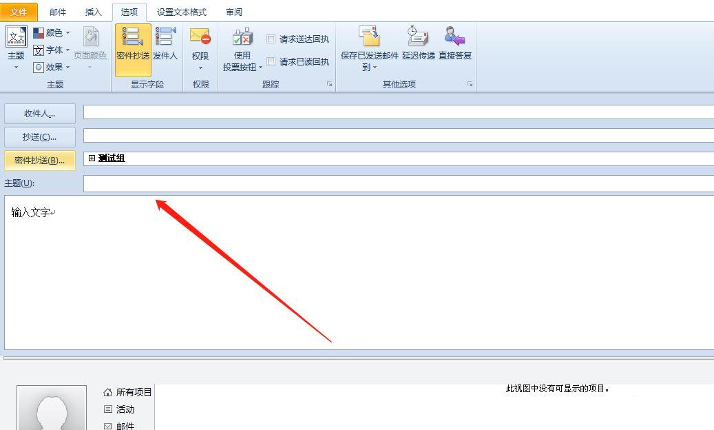 3.然后在菜单栏中点击选项功能,将会切换出相关的功能区,用户点击其中的密件抄送选项