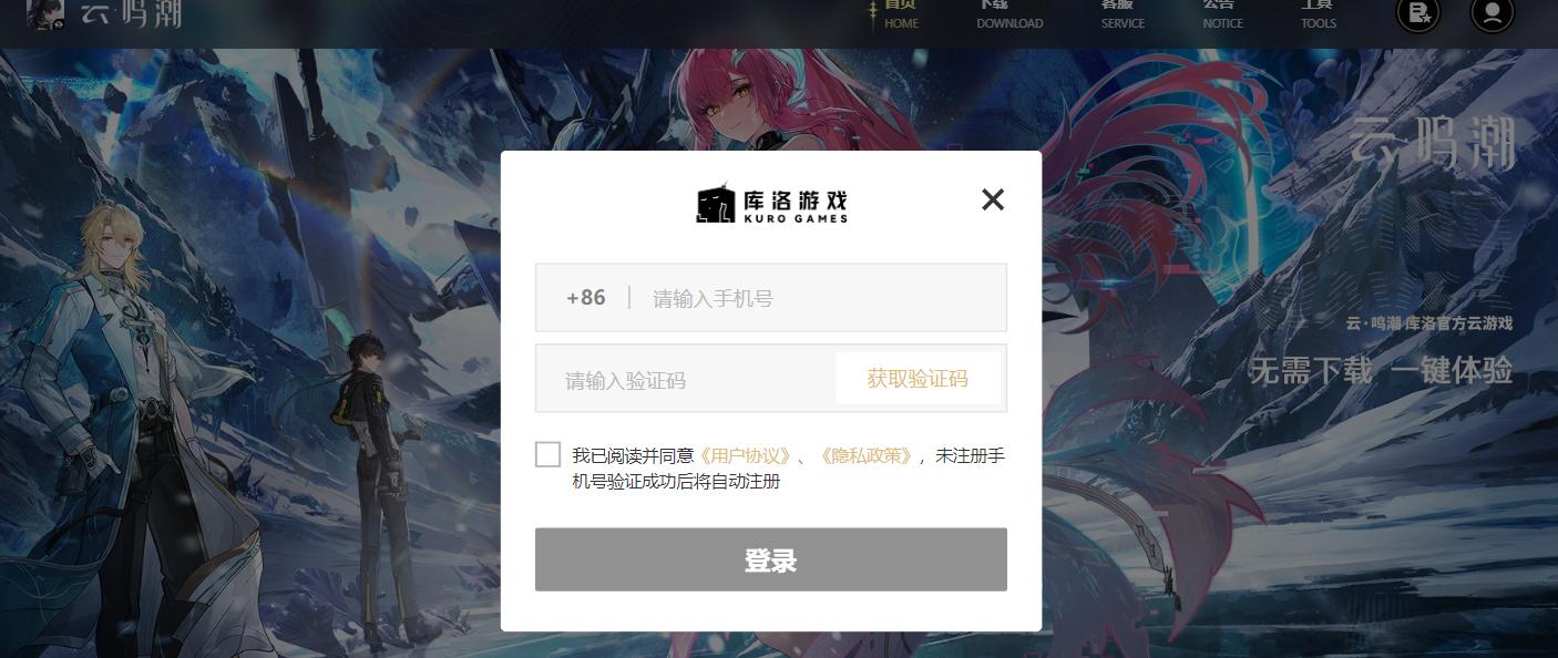 1. 点击上方链接进入云鸣潮网页版界面