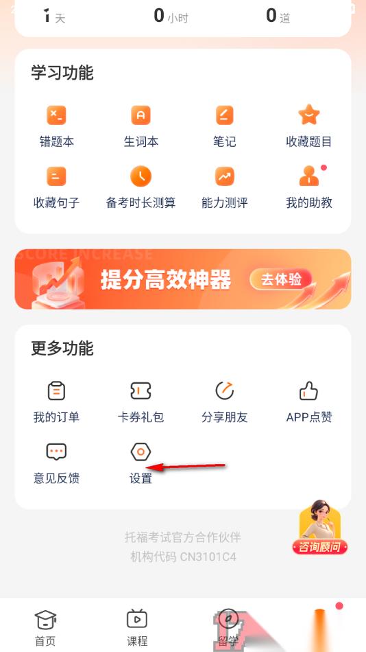 小站托福APP是一款为用户们推送了海量的考托福课程、单词、资料以及音频等相关内容,让用户可以通过该应用积累大量的单词、练习口语等,从而提升英语学习能力,但是总是一些用户总是无法每天坚持使用该应用学习英语,那么可以将该应用提供的学习提醒功能开启,设置一下每天具体几点钟开始学习英语课程,到了该学习时间时,系统就会提醒用户进入到该应用中学习单词、英语课程等,让用户能够有一种被督促学习的感觉,时间长了之后就会养成良好的学习习惯,对此打开应用设置页面找到学习提醒功能即可设置。