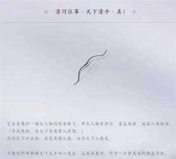 打开游戏内的 【博物志】→【兵戈】→【旧物】 列表,找到“悬剑·碎纹雕弓”。如果追溯成功,其描述将从“往事·待追溯”变为一段具体的历史故事。