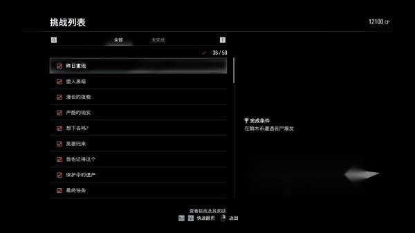 ※挑战的完成状况所有存档共通,每项挑战只能完成一次,已经完成的挑战无法在其他存档中重复完成。也就是说,完成同一个挑战只能获得一次CP点数,重复完成不会再获得CP点数。但是,累计类的挑战可以通过反复存读档来累积。