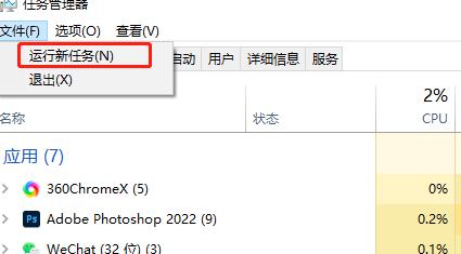 2、然后在上方的“文件”中,点击“运行新任务”,如下图所示。