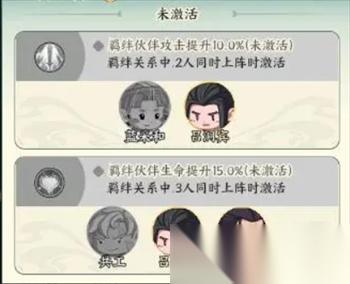 与共工、杨戬三人同时在一个队伍中上阵时激活,激活后羁绊伙伴生命提升15.0%。