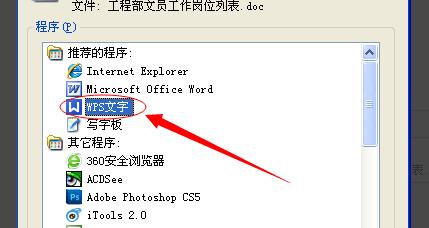 第三步:注意默认打开方式是 WPS(如图所示)。