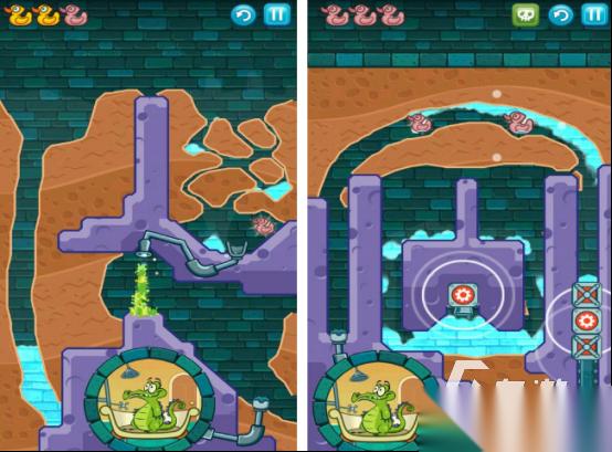 游戏中拥有着可爱的主角,就是顽皮小鳄鱼,为了让这一种动物顺利的完成洗澡,必须要通过锻炼脑筋的方式,将水引到鳄鱼能够洗澡的地方。主要的难点就是在完成任务的过程当中,会出现各种各样的陷阱,甚至是毒水,需要合理的根据每一个关卡的布局情况,将清水引到浴缸,获得鸭子,这样才能够完成关卡的挑战任务。