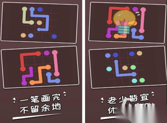 需要玩家有很好的智力,才能完成闯关的手游,里面有超多彩色的线,需要观察每一个点的放置情况。只有在关卡挑战时将所有彩色点连接,而且不能够相互交织,还要将格子填满的情况下才能够通过关卡。有特别轻松的游戏氛围,在玩的时候不能够留一点余地,老少皆宜。还有超多免费的关卡,可以通过实力解锁。