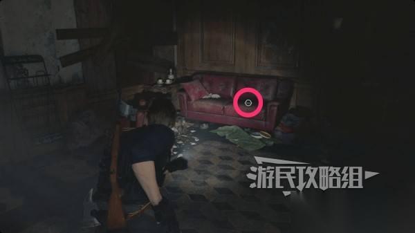 位于进入浣熊市东部不久后到达的苹果门酒店内,就在红色沙发上。