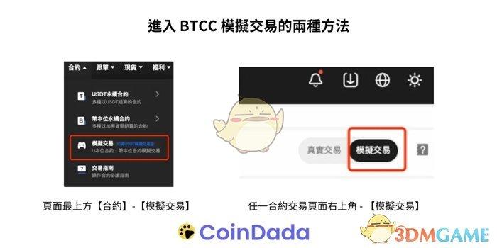 登录 BTCC 帐号后,两种方法可以进入模拟交易页面: