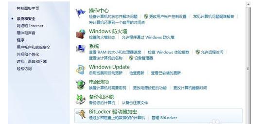 打开系统与安全选项,得到如下图所示的对话框