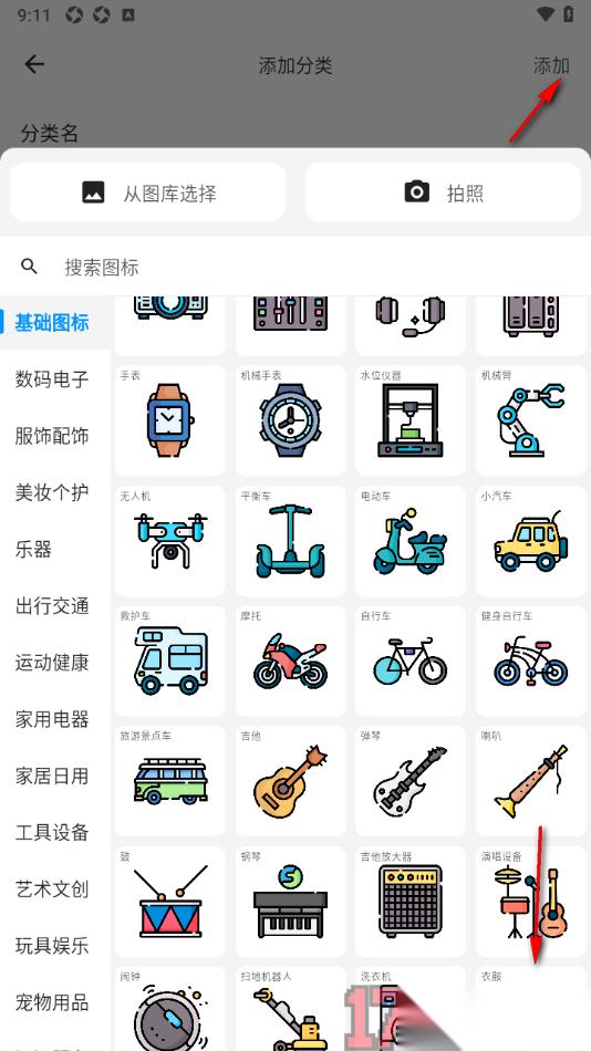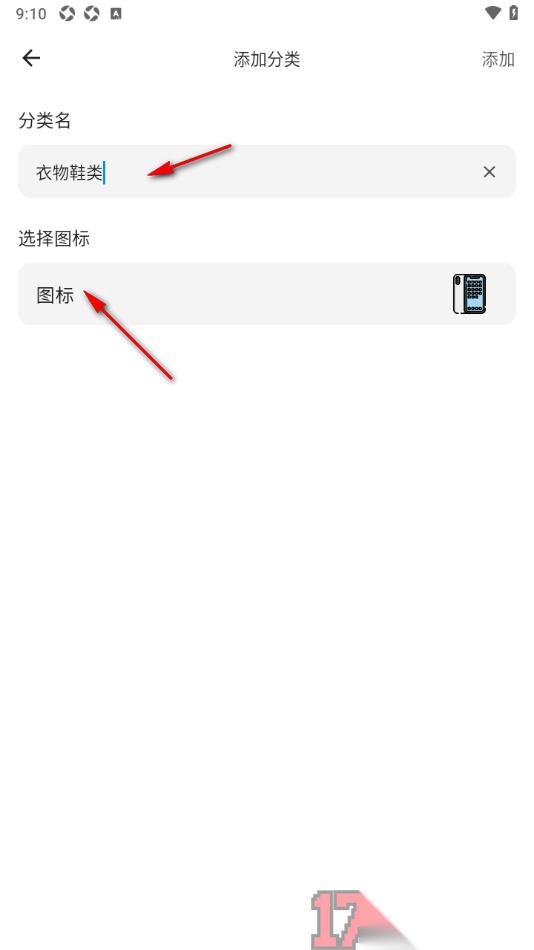 4.在打开的添加分类页面中,需要设置一下分类的名称,然后点击打开图标选项进行筛选。