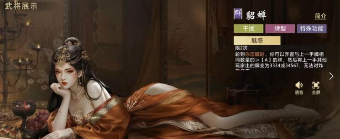 三国百将牌貂蝉技能机制分享:貂蝉虽不直接输出,但可通过即时干扰掌控局势,是团队中不可或缺的控场核心。其技能兼具威慑力与战术深度,在多人对战中能有效打乱敌方部署、为队友创造进攻窗口。