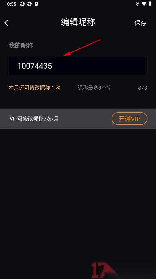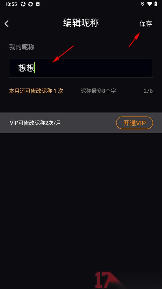 5.之后再在输入框中输入自己想要编辑的昵称名字,然后点击右侧上方的【保存】按钮即可完成设置,如图所示。