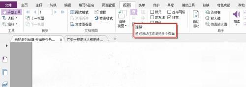 3、最后进入主页面选择连续,就能实现PDF文件通过滚动连续浏览多个页面操作。