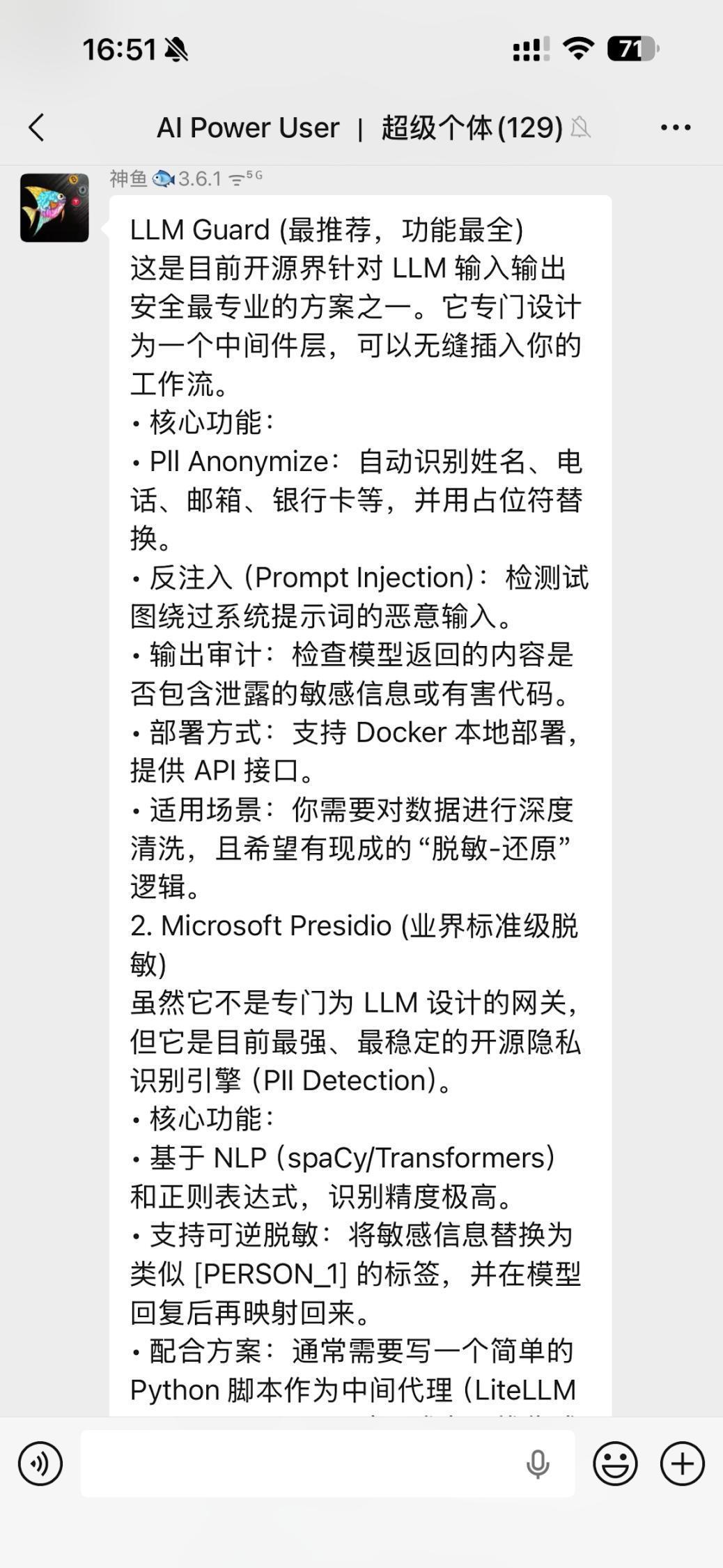 戏称自己为「OpenClaw 博主」的 Cobo 联合创始人兼 CEO 神鱼,在社区内对这个工具推崇备至。它是目前开源界针对 LLM 输入输出安全最专业的方案之一,专门设计为插入工作流的中间件层。