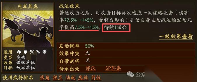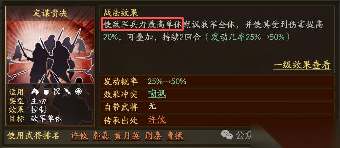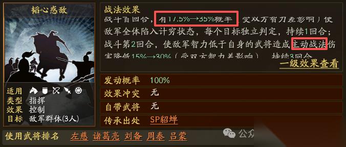 比前面两个战法强,但是效果单一,只能针对主动队伍。