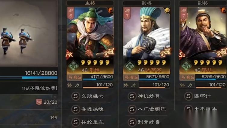 克制太史慈的核心在于利用蜀弓阵容强大的控制链与属性压制能力,精准打断其输出节奏并削弱其威胁。蜀弓阵容以姜维、诸葛亮、庞统组成的铁三角为基础,凭借主动战法的爆发力和控制效果,在战场上形成强大的压制力。诸葛亮的神机妙算能够精准打断敌方主动战法的释放,姜维的夺魂挟魄则能持续窃取敌方核心属性,当这两个效果与庞统的高伤害战法相结合时,就能形成完美的属性压制链条。这套机制在面对依赖突击战法和普攻输出的太史慈时尤为有效,通过在前几回合建立优势,大幅压缩太史慈及其所在阵容的输出空间与续航能力。