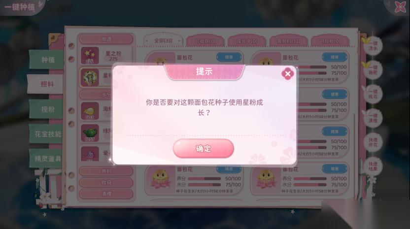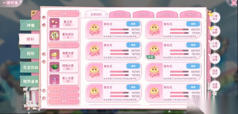 在一键种植功能里,不仅可以一键完成照料,也能兼顾每朵花的成长,更加灵活。