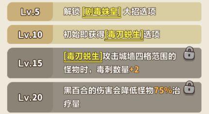 黑百合升至20级后,对怪物造成伤害会降低其75%治疗量,等级要求高无需过多关注。