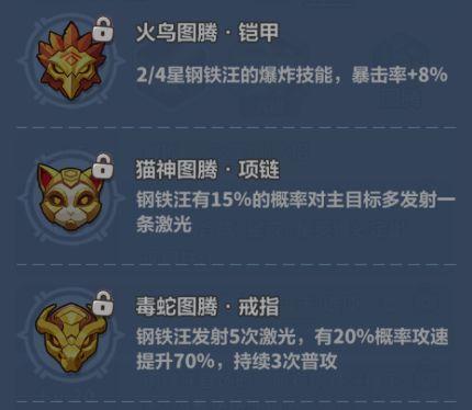 对于钢铁汪、剑圣这类需要多个强化词条培养的英雄,【词条数量】增伤图腾能起到非常不错的效果。银币资源越丰富,该图腾效果越好,非常契合【合作模式】玩法,洗炼出来记得保留哦~