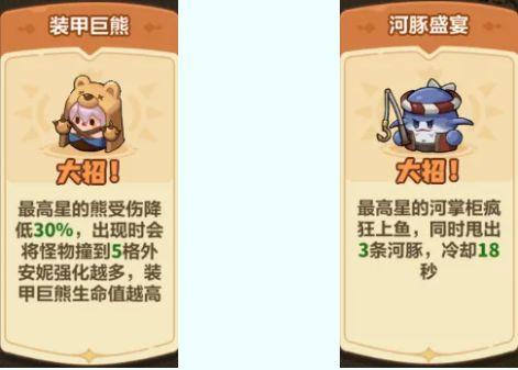 在这套阵容中,安妮和河掌柜非输出位。优先解锁安妮【装甲巨熊】大招来保护城墙,河掌柜的大招则是起到增加【减疗】覆盖范围的作用,优先级较低。