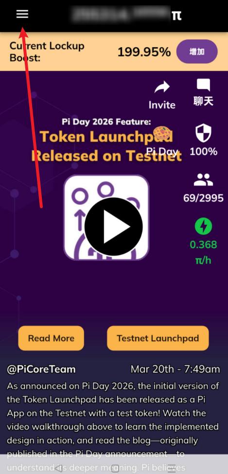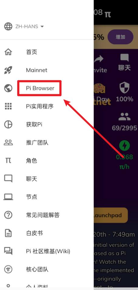 1.打开Pi App:点击左上角菜单栏(三横杠),选择“Pi Browser”并登录Pi浏览器。