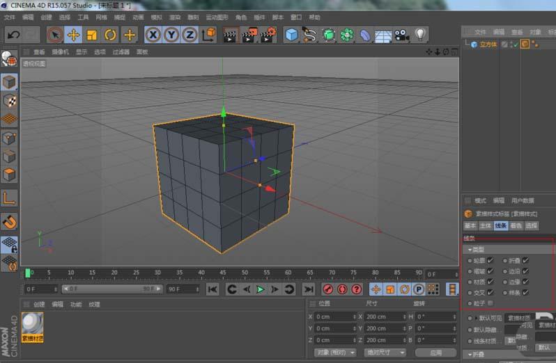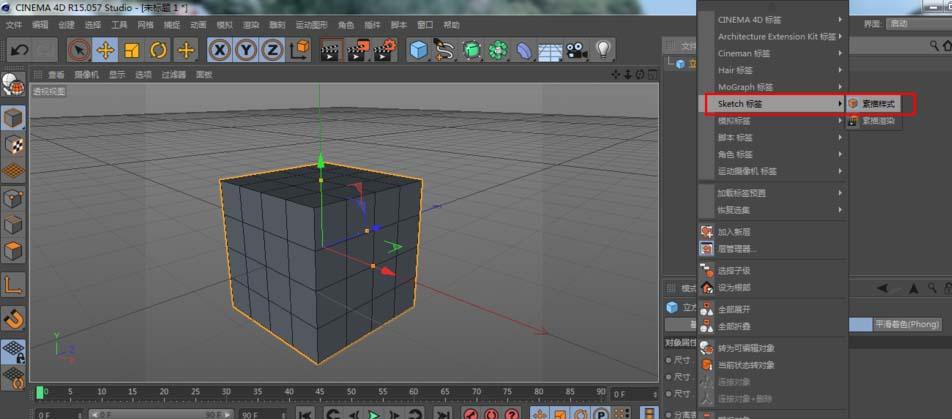 2、然后,给这个物体添加一个素描样式标签,这时材质窗口出现一个材质球。