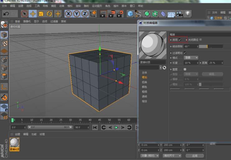 3、接下来,双击素描材质的材质球,然后修改里面的笔画、颜色、粗细等参数。渲染看一看。