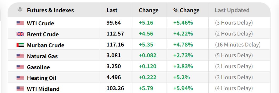 这直接戳中了能源市场最敏感的神经。美股投资网调研数据显示,亚洲原油市场已经出现现货短缺,市场的定价逻辑从“流量可能中断”变成了“库存实质性枯竭”。WTI原油现货价格盘中单边狂飙近8%,强力突破100美元关口;中东阿曼迪拜原油期货也大涨超5.5%。